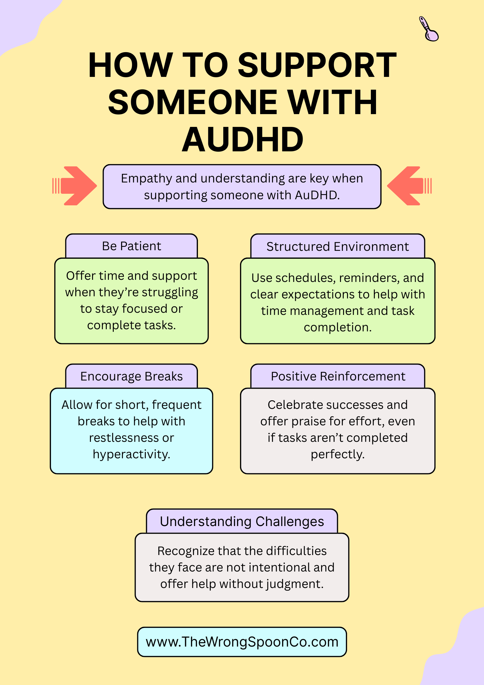 Download here..A gentle, practical guide for supporting someone with AuDHD — covering patience, structure, encouragement, and understanding without judgement.