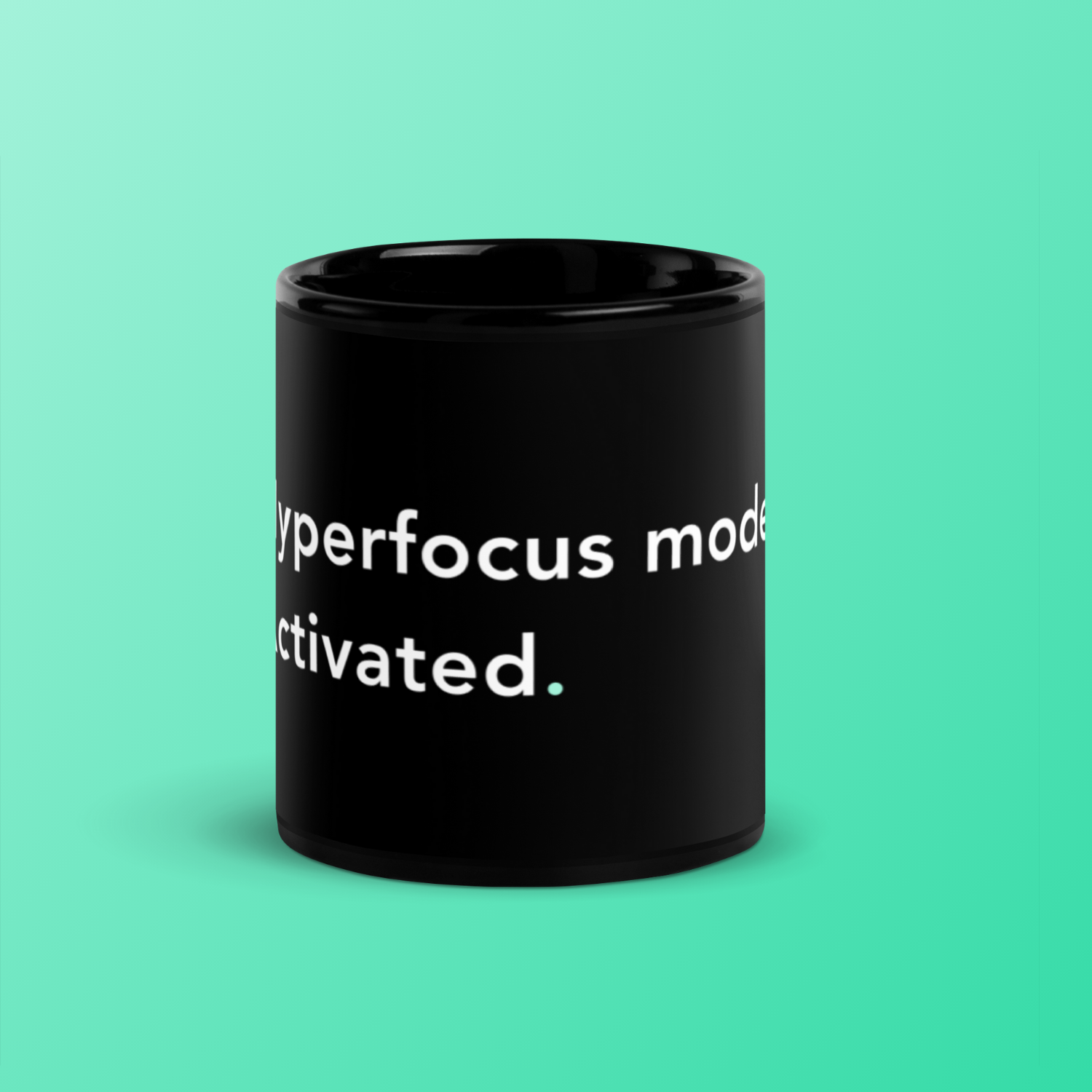 A sleek black mug built for chaotic mornings, deep-focus afternoons, and every accidental twelve-hour hyperfocus session in between.