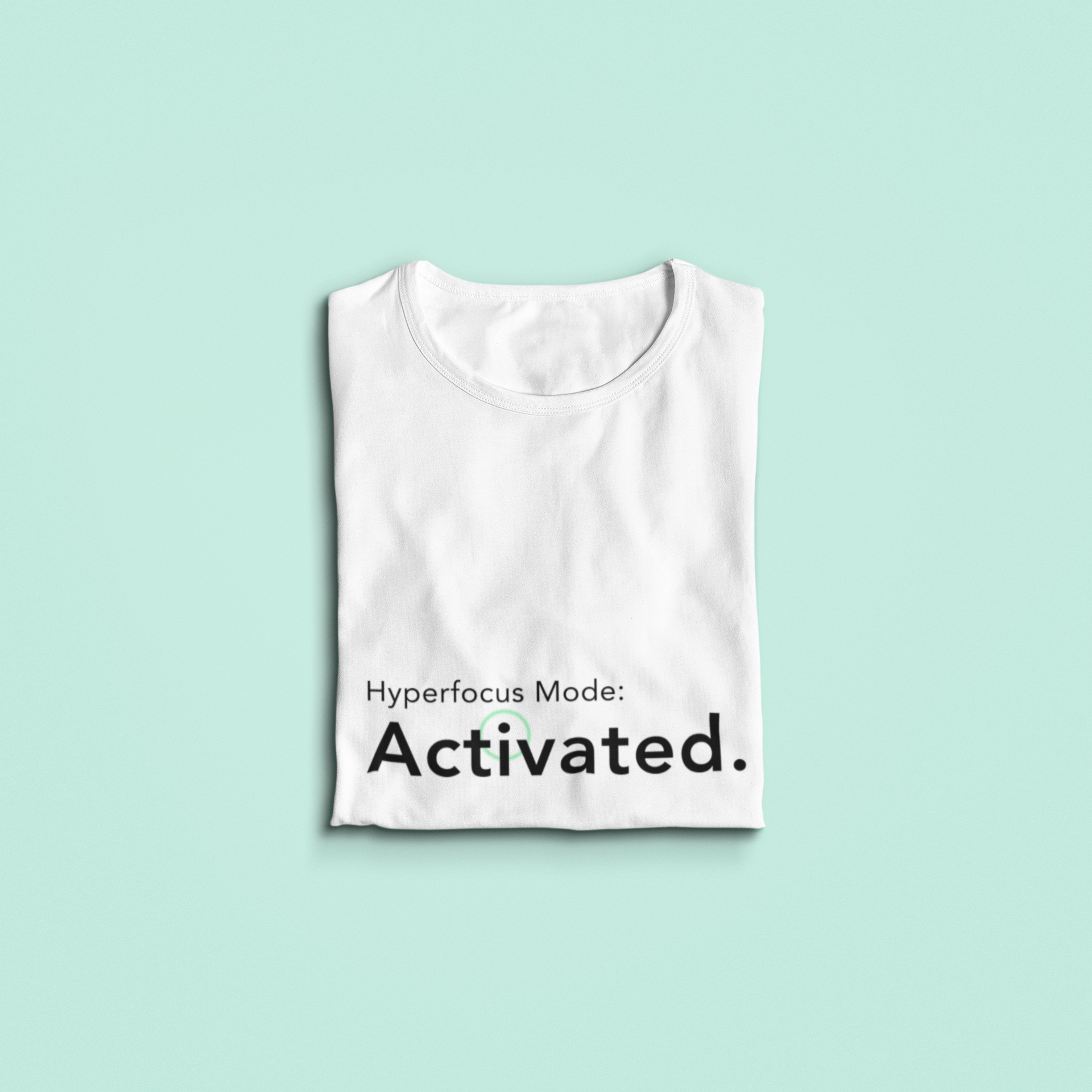 The Hyperfocus Mode: Activated! tee brings that all-in energy — big front print, clean fit, and soft cotton built for comfort and chaos alike.