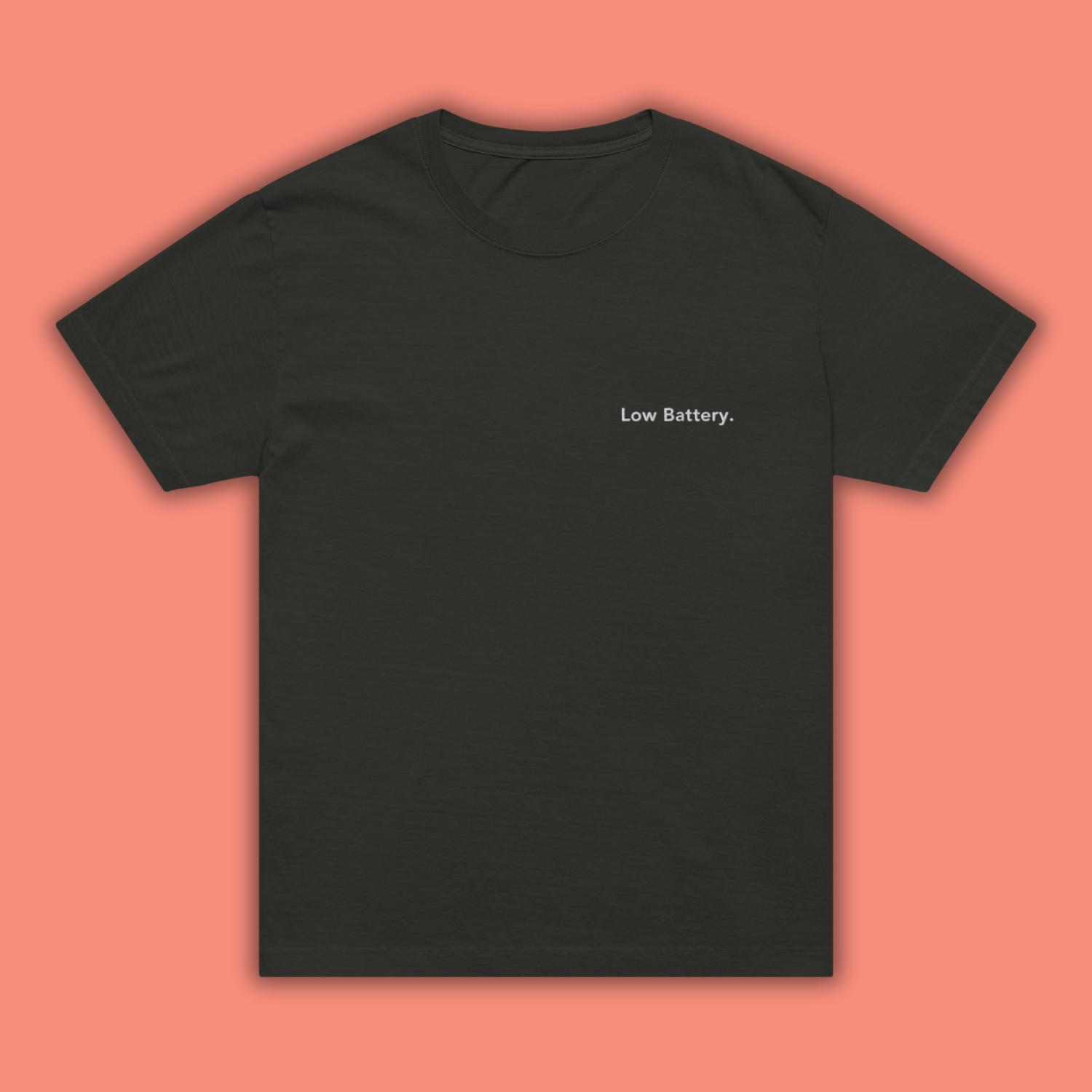A relaxed, oversized fit with pocket embroidery that says what we’re all thinking — Low Battery.