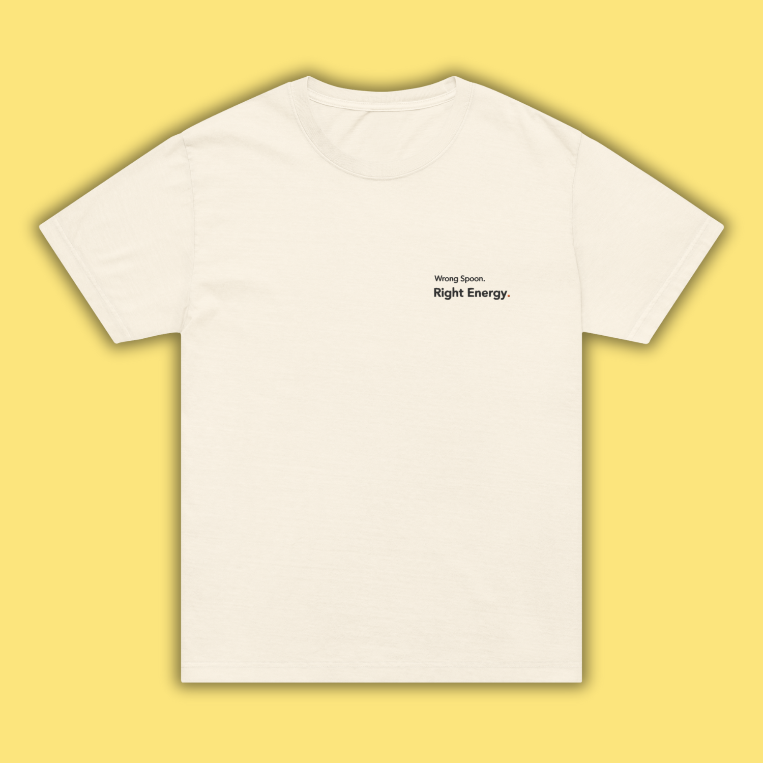 An oversized fit for maximum comfort and quiet confidence — finished with a pocket embroidery that carries our Wrong Spoon. Right Energy. signature.