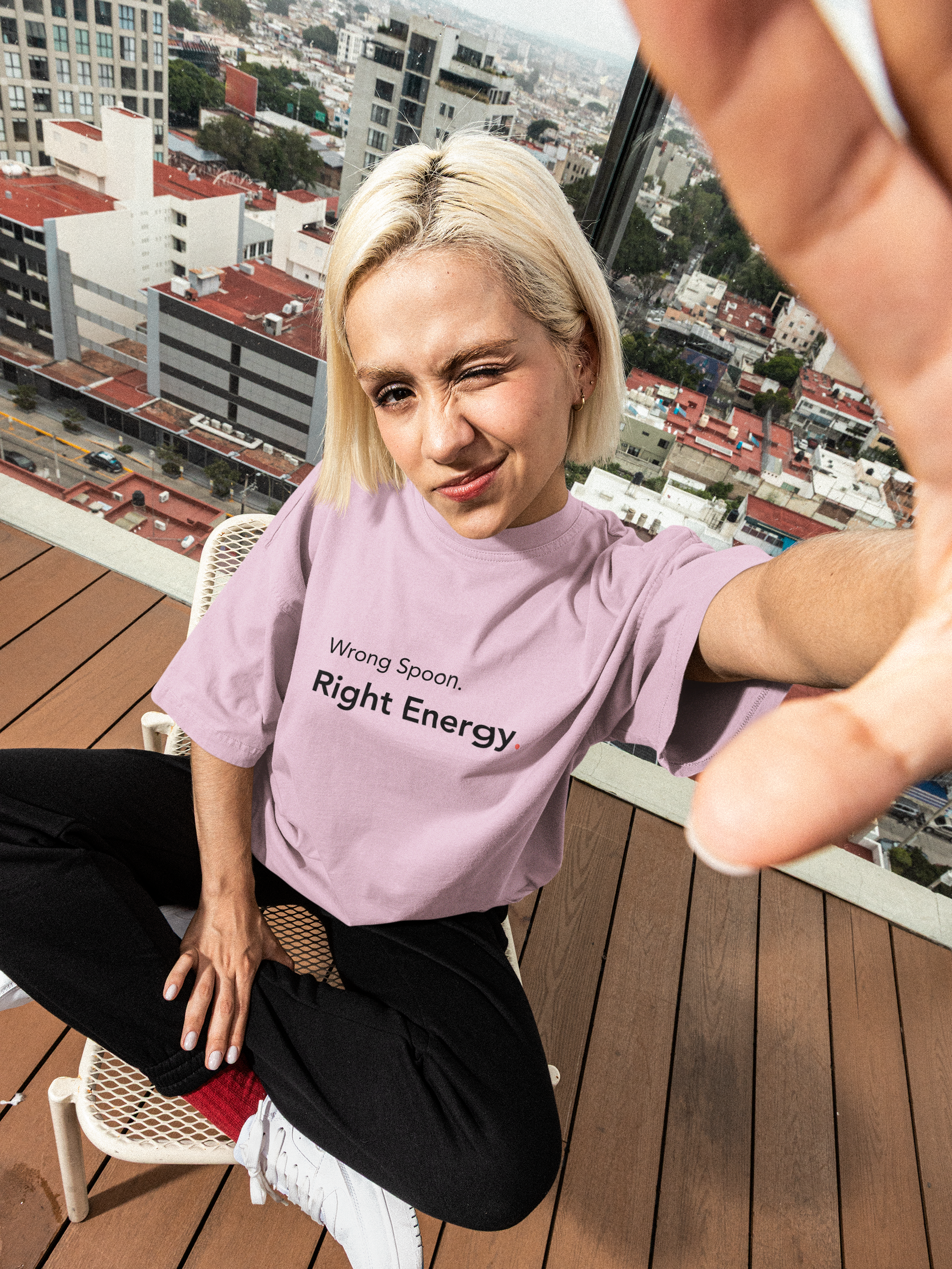 A full-front pastel pop design brings the Wrong Spoon. Right Energy. motto to life — unapologetic, dopamine-rich, and made for the ones who bring the vibe everywhere they go.